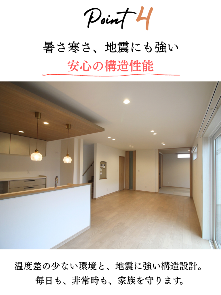 下記のような性能を解説しつつ、施主様の暮らしに最適化した設計をご覧いただけます。