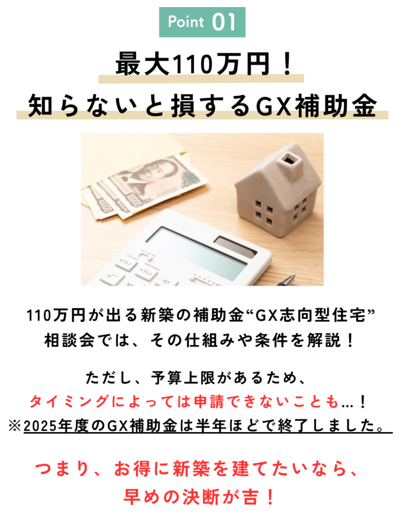 4/18(土)19(日)GX志向型住宅 補助金の相談会を開催します!