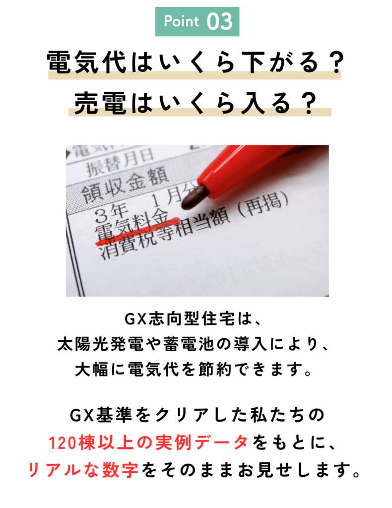 全て標準仕様でGX志向型住宅の基準をクリアしています。