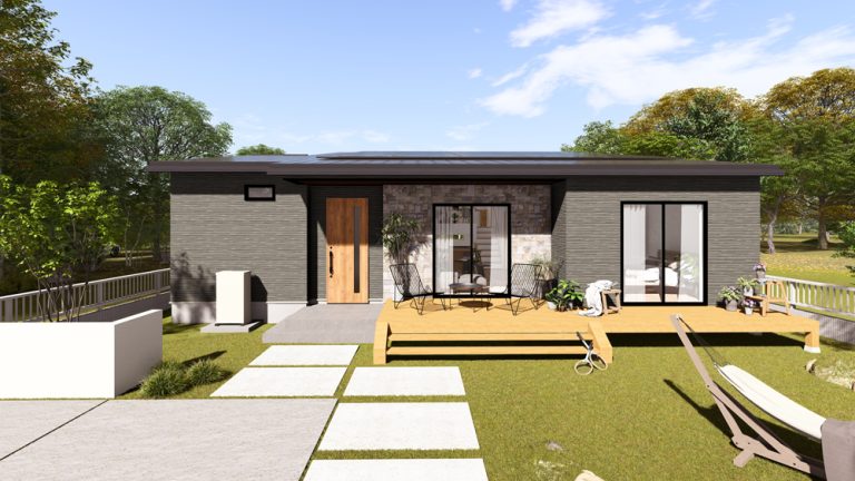 シンプルな3LDKの平屋。 ウッドデッキ付きで、ゆったりと過ごせます。