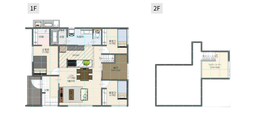 シンプルになりがちな平屋に、遊び心をもたせたプランです。