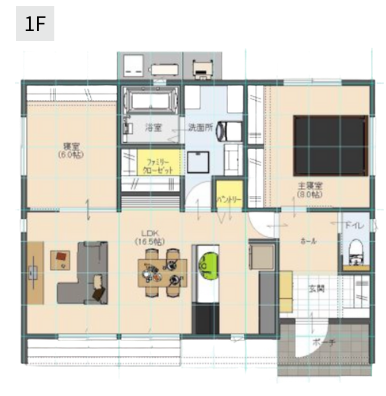 シンプルな間取り&フラットな平屋の設計で、あらゆる世代の暮らしにフィットします。