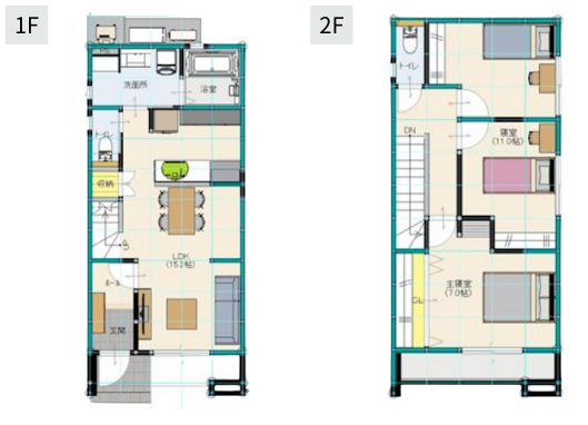 都市部の住宅街にあるような、小さめの土地に建てるのを想定したプラン。